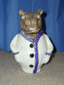 So also heisst eines unserer Maskottchen, seit 2003 in unserer Nilpferdherde ! Dieses circa 30 cm große Prachtexemplar ist das Produkt einer Weinviertler Künstlerin entstanden nach langen Portraitstudien und somit ein Unikat. |
